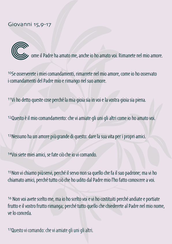 Giovanni 15,9-17– Domenica, 9 maggio 2021, Sesta Domenica di Pasqua.
