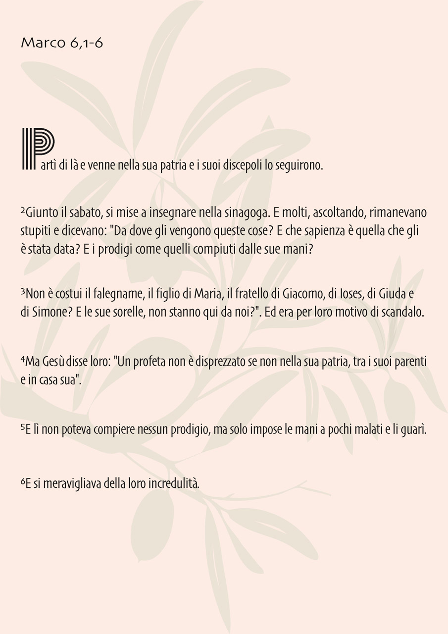 Marco 6,1-6 – Domenica, 4 luglio 2021,
