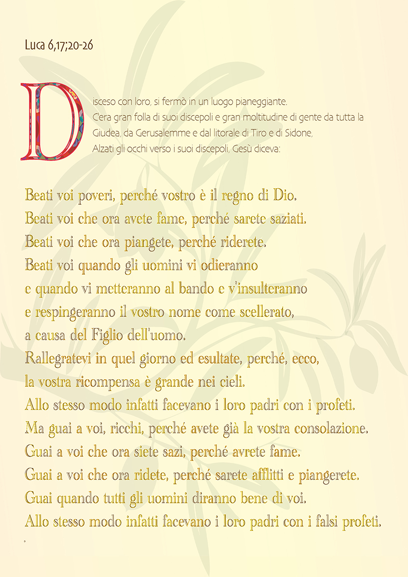 Ad una prima lettura, le parole di Gesù mi sconvolgono, piuttosto che consolarmi. La condizione di chi è “beato” e “felice” è inconciliabile con le mie aspettative. Prima di tutto mi chiedo: “A quale categoria di persone appartengo?”. Se sono contento, devo aspettarmi il peggio? Mi devo sentire in colpa? Se è così, non rimango; il Vangelo non deve essere questo, non voglio sentire guai e non ne voglio di più di quanti già ne abbia.
