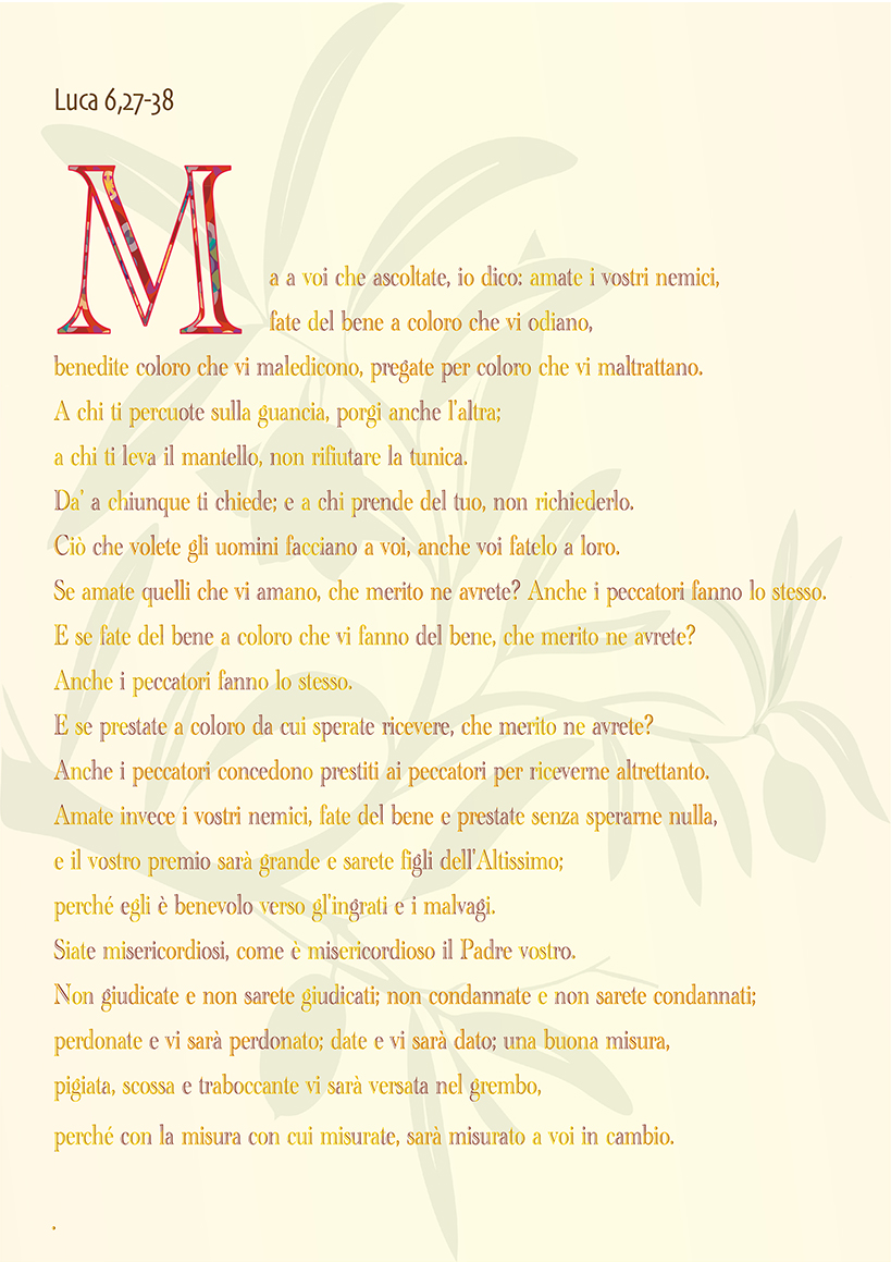 Gli esperti delle scritture sono abbastanza sicuri che il Nazareno abbia pronunciato queste parole. Forse non lo stesso giorno e non nello stesso luogo, ma Luca – come Matteo – riportano le parole di Gesù facendo una specie di copia-incolla. Ascoltarle è come toccare un capo dei suoi vestiti; nonostante i secoli che ci separano, la vicinanza all’Uomo è molto stretta. Qui è situato il nocciolo del pensiero dell’Uomo di Nazaret, il cuore della Sua fede in un Dio che ha osato chiamare Padre. Sono parole che sembrano parlare simultaneamente all’oggi, perché giungono all’essenziale. Eppure, non contengono alcuna allusione alla pratica religiosa e non sono pronunciate nel chiuso di una sinagoga: sono pronunciate fuori dal tempio. Dove vivono anche tutti coloro che non dedicano l’intera vita alle Scritture. Lì, il Nazareno non istituisce una nuova religione, né ordina nuovi sacerdoti. Soltanto, ribalta l’equilibrio dell’etica tradizionale. E scuote: “Amate i vostri nemici, fate del bene a quelli che vi odiano.”
