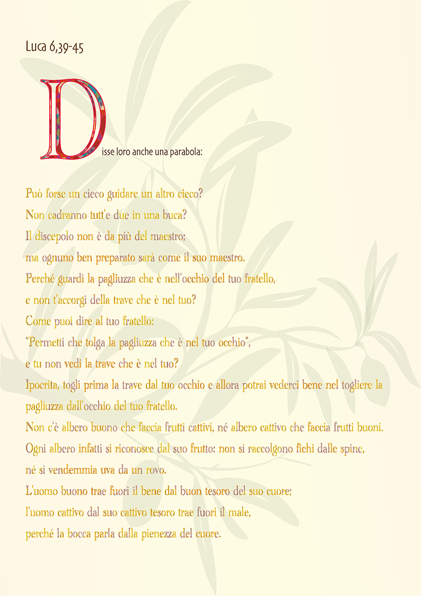 “Il discepolo non è al di sopra del maestro; ma una volta ben formato, ciascuno sarà come il suo padrone”. Una volta ben addestrati… Chi addestra? Gesù: attraverso la Sua Parola. Noi credenti ripartiamo sempre dal Vangelo. È il Cristo che dobbiamo ascoltare, è sulle Sue Parole che dobbiamo appuntare tutto il nostro leale sforzo di comprensione in ogni circostanza; non c’è da verificare misurare la bontà o la cattiveria di alberi diversi; c’è da sapere che c’è una vite (la vita, il Cristo, l’amore per il prossimo come per noi stessi) e ci siamo noi: i tralci. Nella vite dobbiamo rimanere innestati: il tralcio da sé non può dare frutto e se è secco non serve: “Colui che dimora in me e nel quale io dimoro, porta molto frutto, poiché senza di me non potete far nulla”. (Gv 15,5).