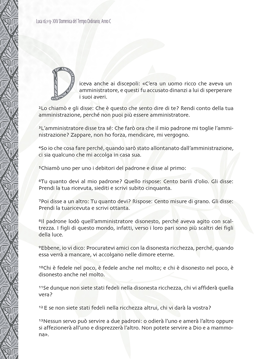 18 settembre 2022 – XXV Domenica del Tempo Ordinario