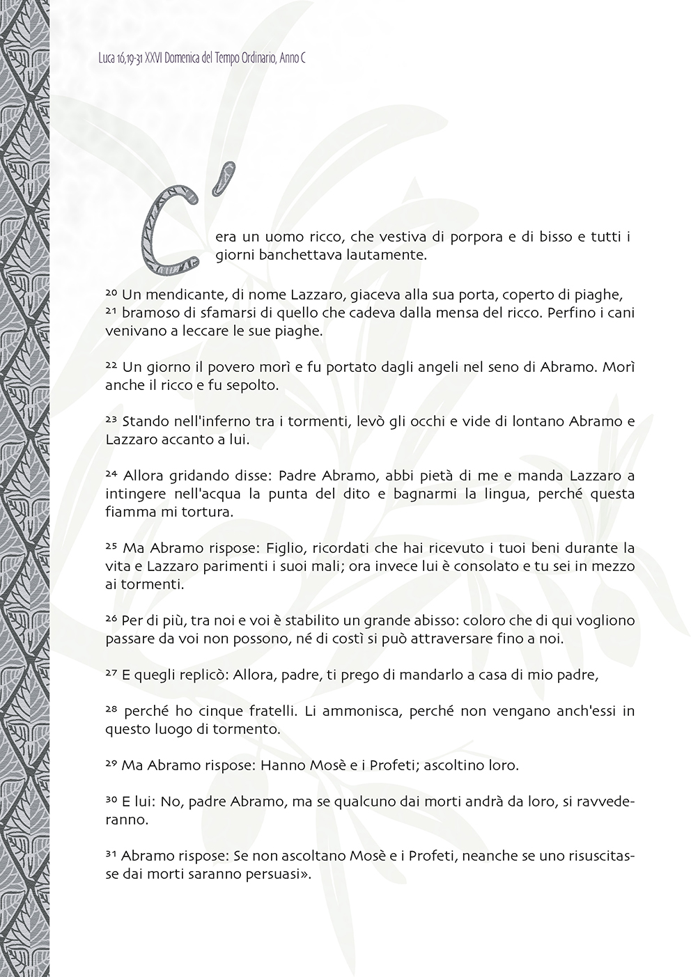 25 settembre 2022 – XXVI Domenica del Tempo Ordinario
