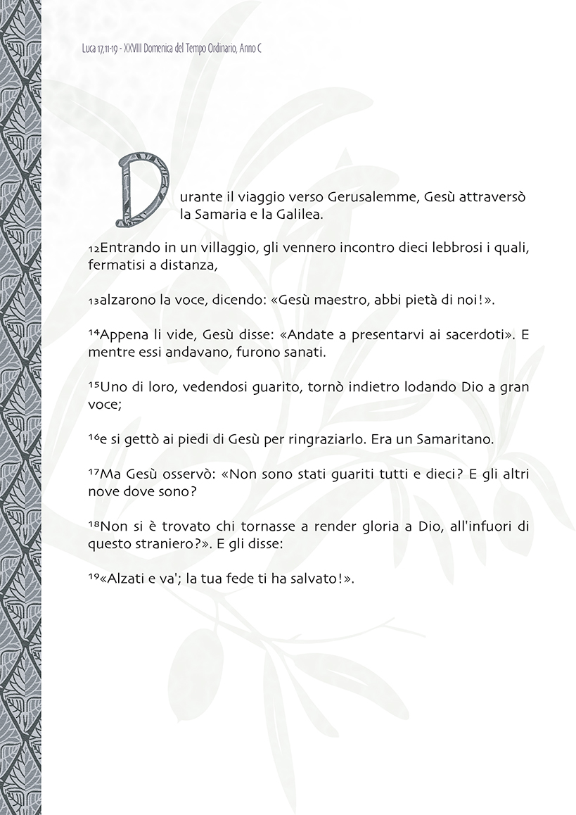 9 ottobre 2022 – XXVIII Domenica del Tempo Ordinario