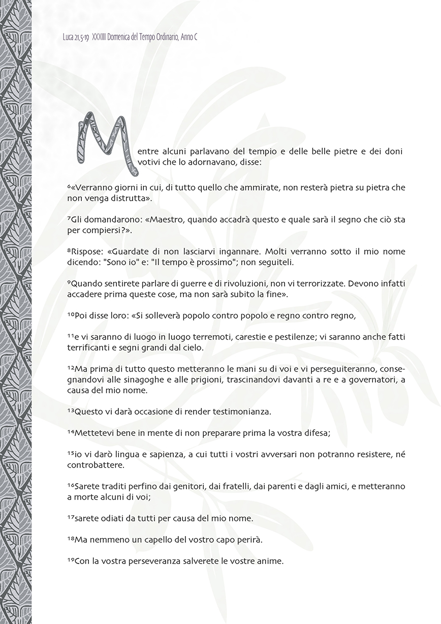 13 novembre 2022 – XXXIII Domenica del Tempo Ordinario